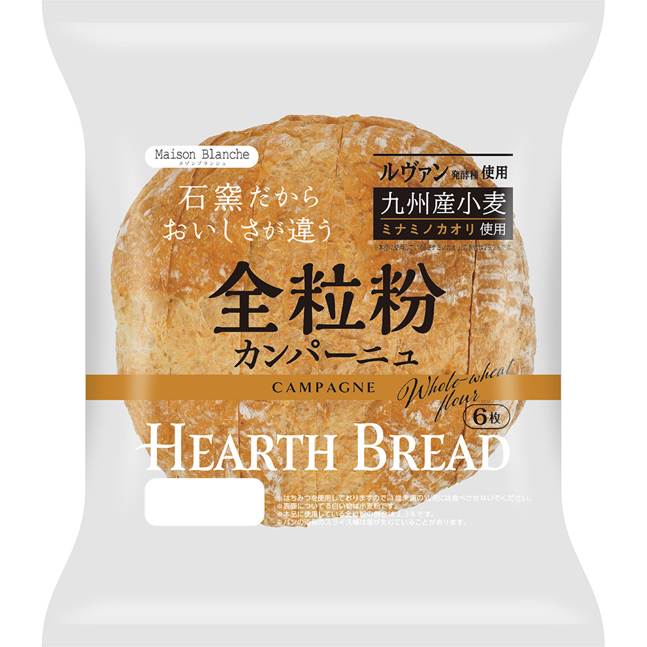 商品紹介 TOP 商品紹介 食卓パン 全粒粉カンパーニュ(6枚入) 食卓パン 全粒粉カンパーニュ(6枚入) ハースブレッド 忙しい朝に 食卓パン 全粒粉を練り込んだ味わいのあるハースブレッドです。九州産小麦「ミナミノカオリ」を使用し、小麦の旨味と味わいを引き出す製法で作りました。 栄養成分表(1包装当たり) 熱量 (kcal) たんぱく質 (g) 脂質 (g) 炭⽔化物 (g) ⾷塩相当量 (g) 614 18.5 7.5 118.2 3.25 ※栄養成分値は平均的な数値であり、製品規格や使用原材料の変更により、変わることがございます。 アレルゲン 小麦 乳成分 大豆 お料理レシピ「マルゲリータピザトースト」 カテゴリーから探すCategory 食パン 食卓パン バラエティ食パン 菓子パン 惣菜パン 菓心堂 メゾンブランシュ ブランド・シリーズから探すBrand 今月の新商品 超 マンハッタン しっとりソフト プチトースト ロングセラー 蒸しケーキ 季節の和菓子 私だけのCafé ハースブレッド こつぶ和菓子 ポケモンパン 特徴から探すCase お子様にやさしい おつまみに 忙しい朝に ティータイムのお供に ガッツリ食べたい 小分け