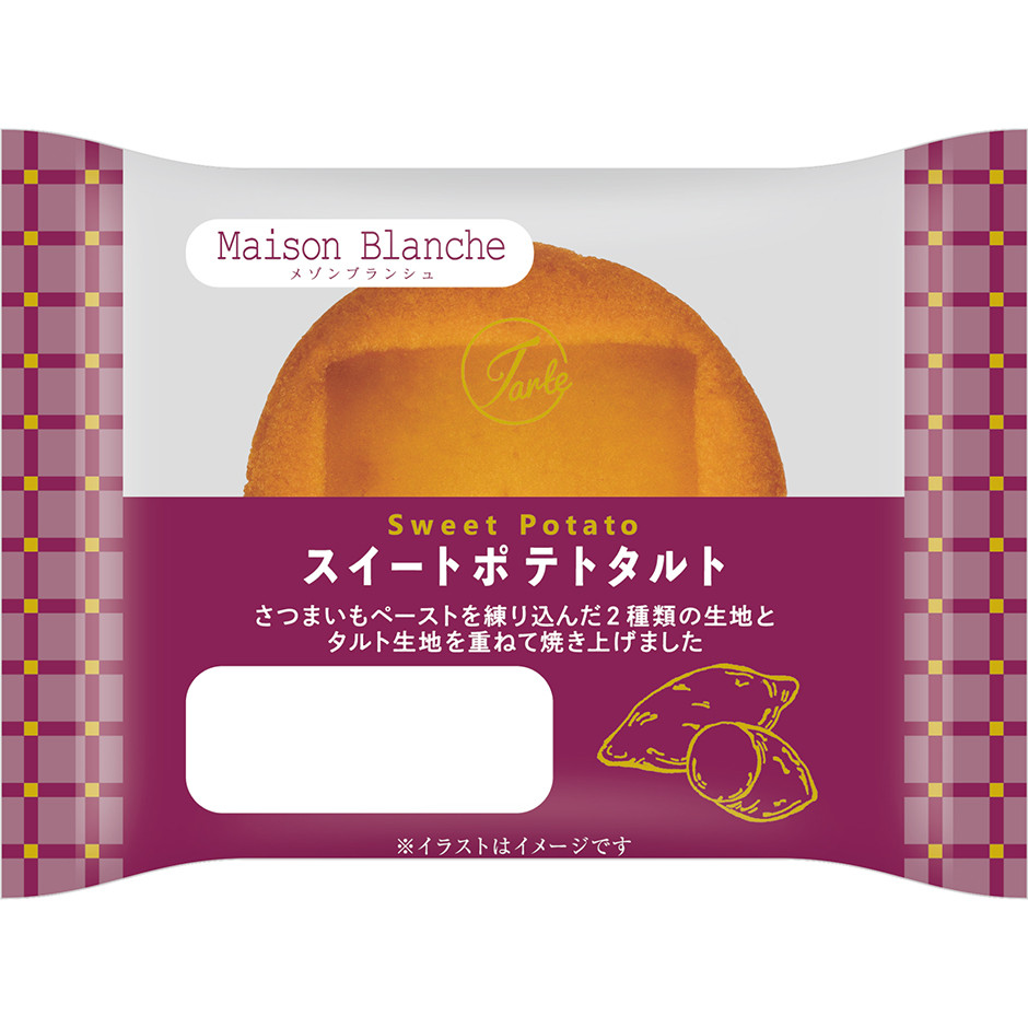 さつまいもペーストを練り込んだ2種類の生地とタルト生地を重ねて焼き上げました。