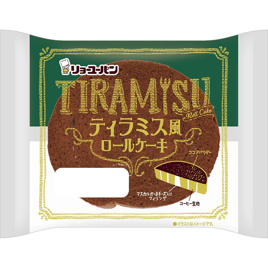 マスカルポーネチーズ入りフィリングをコーヒー生地で巻き、ココアパウダーで仕上げたティラミス風ロールケーキです。