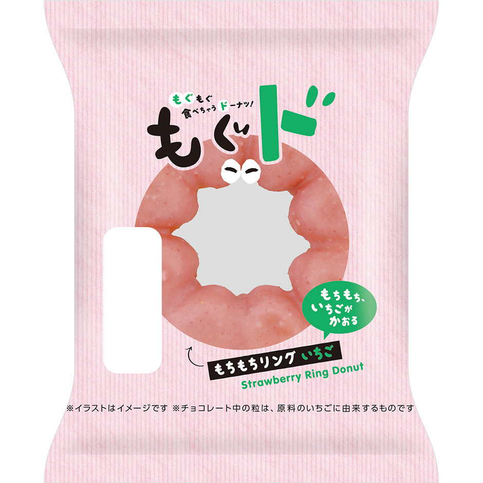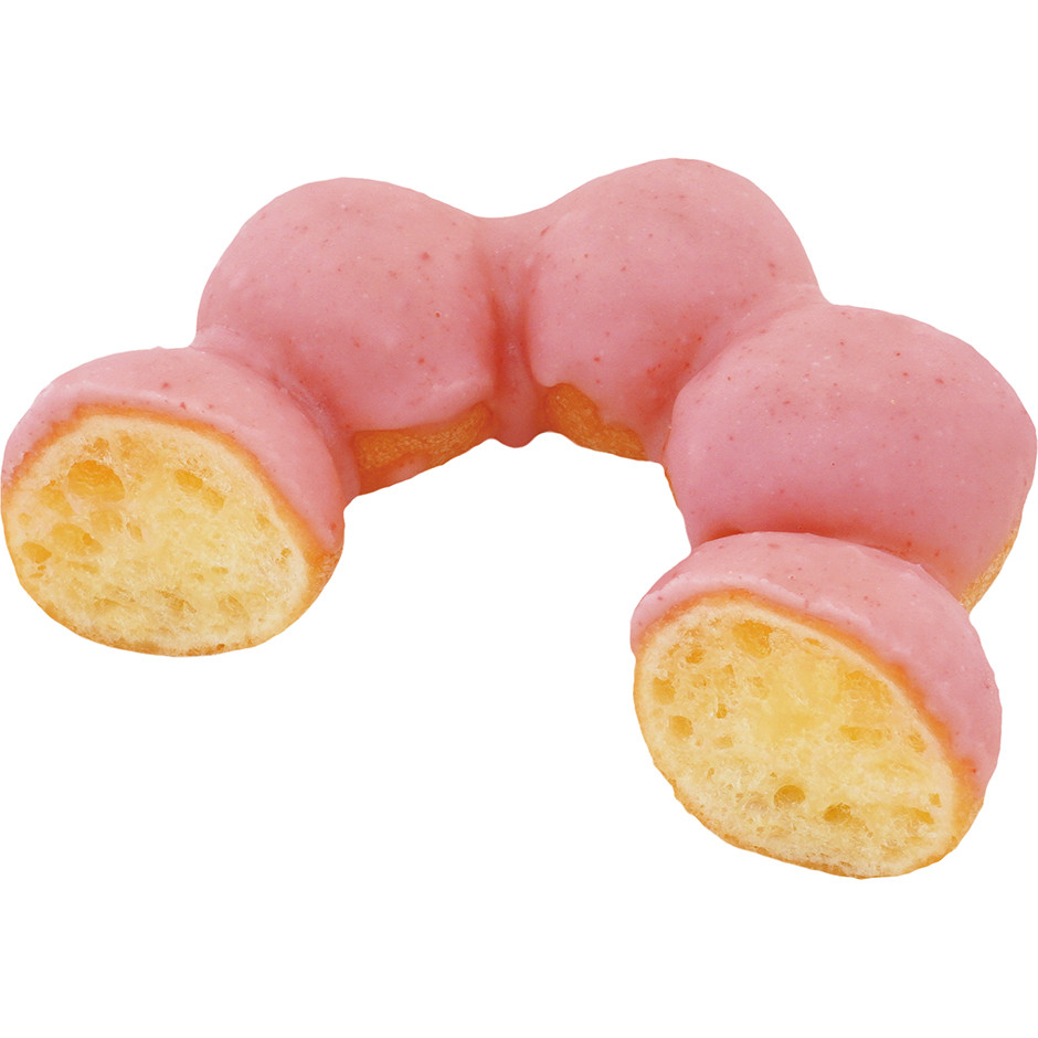 いちご風味チョコでコーティングした、もちもち食感のドーナツです。